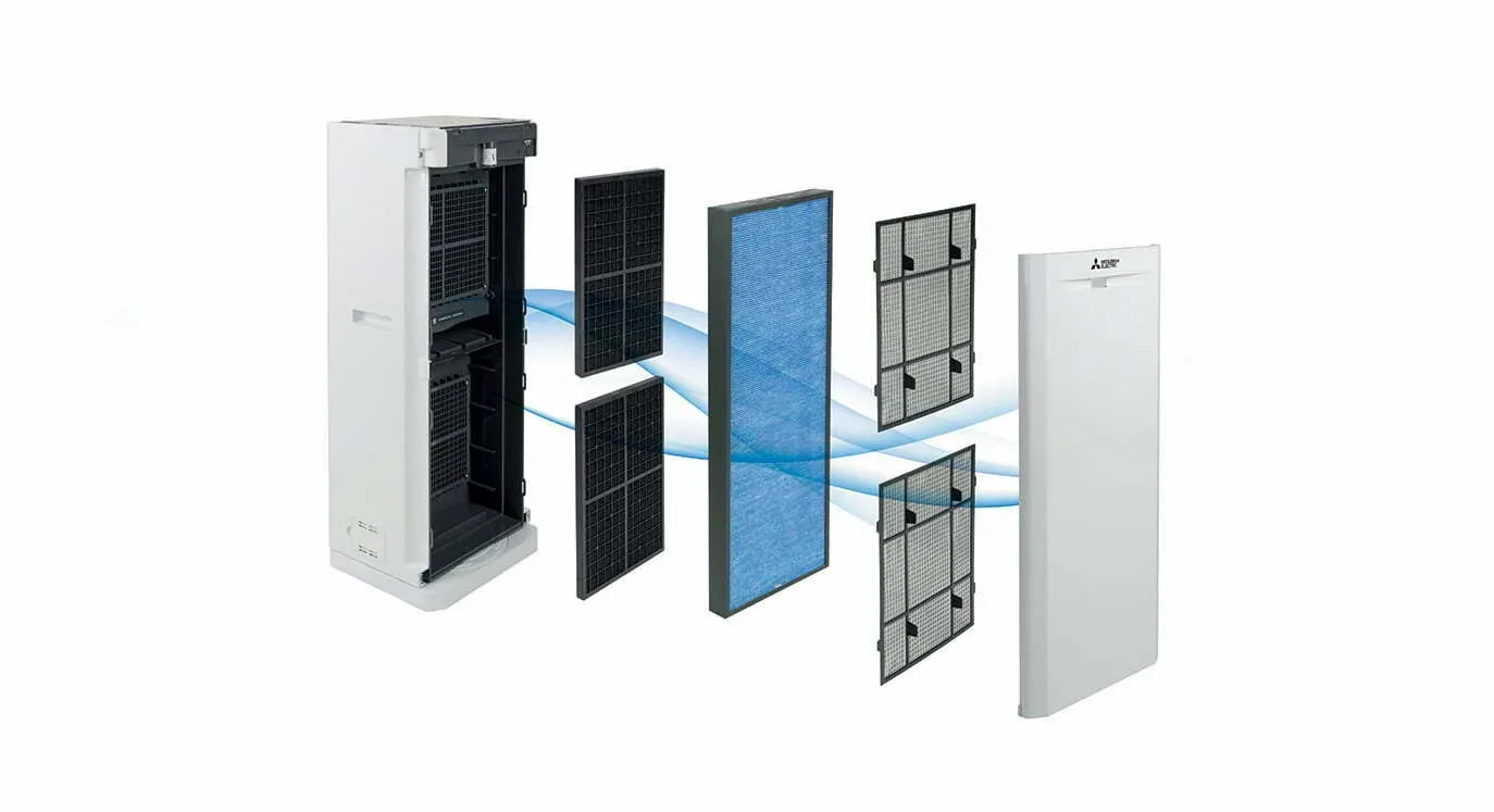 Datorită distribuirii lor foarte mari de aer curat, purificatoarele de aer Mitsubishi Electric pot curăța aerul din încăperi de până la 100m2 cu un CADR de până la 612 m3 / h, una dintre cele mai ridicate performante din piata purificatoarelor rezidențiale. Sistemul de filtrare captează peste 99% din particule microscopice din aer cu filtru HEPA, îndepărtează mirosurile și neutralizează substanțele nocive precum formaldehida prin intermediul unui cărbune activ filtru (combinat cu un filtru catalitic de platină).